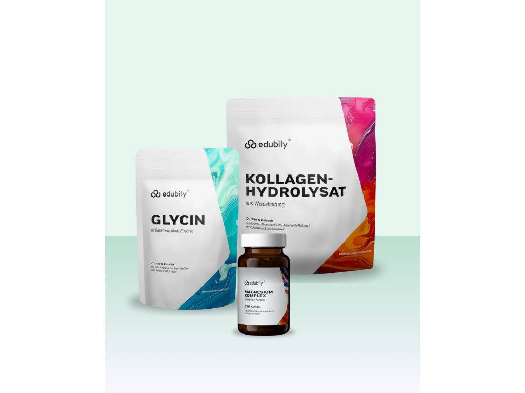 Můžete užívat společně ve stejný den (např. hořčík večer k relaxaci a glycin + kolagen kdykoliv).